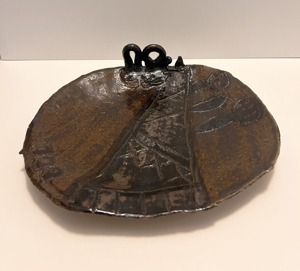 Untitled (Plate with brown and black glaze, incising & attachments)
