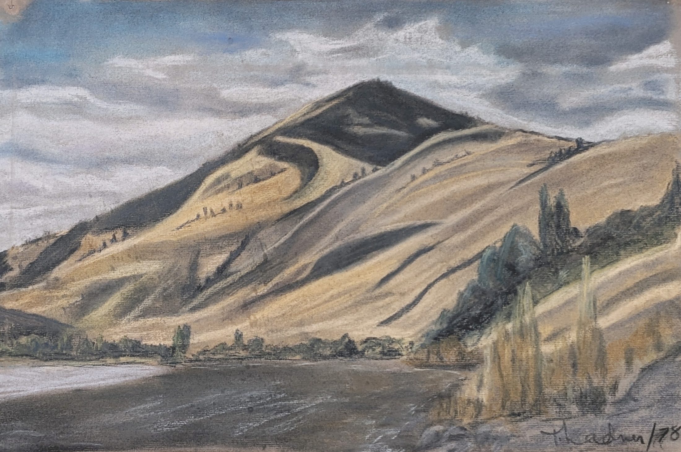 Signed: "T Ladner" in charcoal lower right front. Inscribed: "78", in charcoal, following the signature.